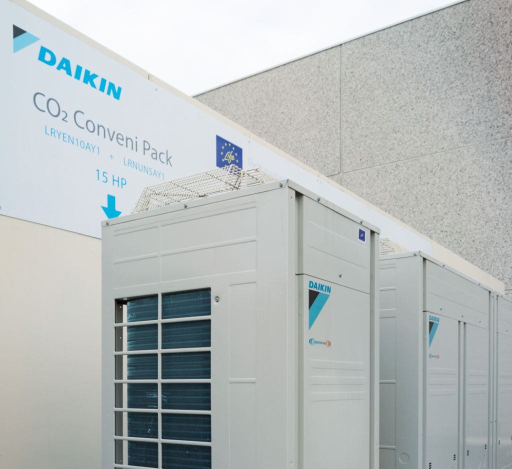 Jedním z těchto produktů je unikátní Conveni Pack na CO2, který dokáže nejen chladit pulty a vitríny v obchodech s potravinami, ale třeba také zdarma vytápět prostory prodejny nebo zázemí obchodu odpadním teplem. V zimě, kdy potřeba chlazení významně klesá a odpadního tepla by tedy bylo málo, se Conveni Pack dokáže přepnout do režimu tepelného čerpadla a zbývající potřebné teplo k vytápění si sám vyrobí. Conveni Pack (propojený s vnitřními klimatizačními jednotkami) dokáže dokonce v létě klimatizovat. Jde tedy o multifunkční zařízení, které šetří prostor (jedna velmi kompaktní venkovní jednotka) i peníze. „Pokud je budova velká a má větší potřebu vytápění, dá se Conveni Pack doplnit třeba VRV systémem (tepelným čerpadlem). Pokud je naopak větší potřeba chlazení a mrazení, doplní se kondenzačními jednotkami ZEAS,“ doplňuje Tomáš Macalík.